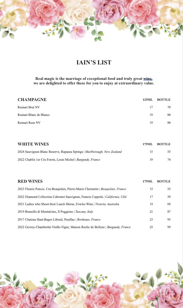 Real magic is the marriage of exceptional food and truly great wine. Too often excessively priced…With this in mind, Iain has selected some of his favourite wines and we are delightedto offer these for you to enjoy at extraordinary value.